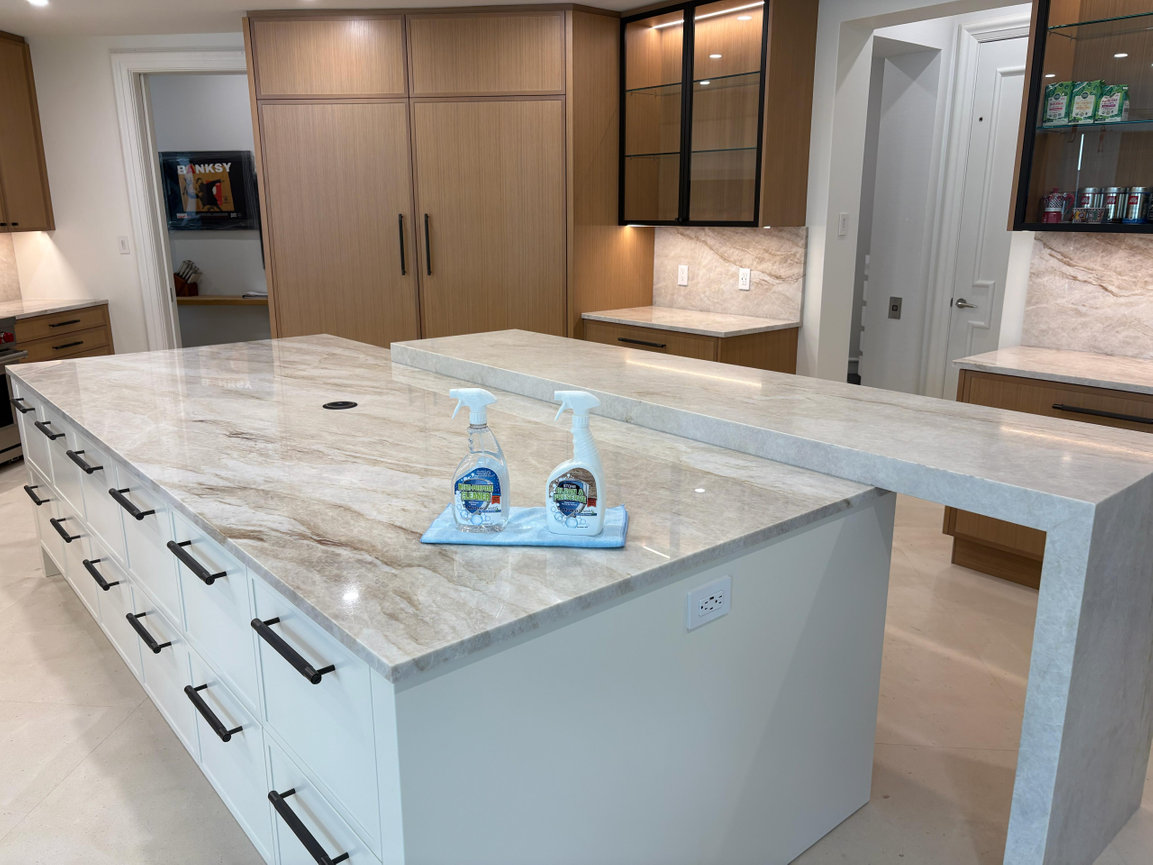HydroShield Sealer is an innovative stone surface protection designed for high-maintenance areas. It penetrates deeply to protect natural stone from water, oil, and stains while maintaining the stone’s natural look and breathability. Ideal for both interior and exterior surfaces, it provides long-lasting durability, superior stain resistance, and easier maintenance without altering the finish.